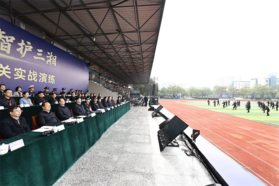 本次全省公安機(jī)關(guān)實(shí)戰(zhàn)演練科目包括“1+2+3+4”,即:“十四五”公安建設(shè)成果一項(xiàng)匯報(bào),新質(zhì)戰(zhàn)斗力裝備展、公安部智慧公安軟件研發(fā)中心(長沙)成果展兩大展示,守護(hù)一江碧水、大型文旅安保、智慧交管三個(gè)視頻連線科目,槍械使用戰(zhàn)術(shù)、徒手攻防技術(shù)、防暴處突、事件處置四個(gè)現(xiàn)場(chǎng)演練科目。