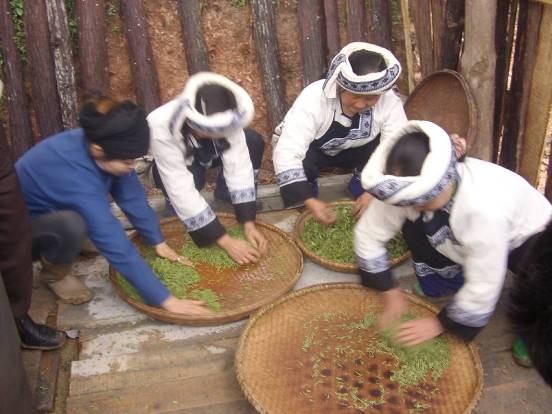 古丈毛尖茶的特征是條索緊細(xì)圓直,鋒苗挺秀,白毫披露,色澤翠綠,清香馥郁,味濃醇爽,回味生津。沖泡時(shí),芽葉沉底,芽尖向上挺立,或如旗槍,搖曳晃蕩。舉杯細(xì)品,先微苦再轉(zhuǎn)甘,最后滿口香醇,令人心曠神怡。古丈毛尖茶手工制作技藝分為:殺青、初揉、炒二青、復(fù)揉、炒三青、做條、提毫收鍋等七道工序。