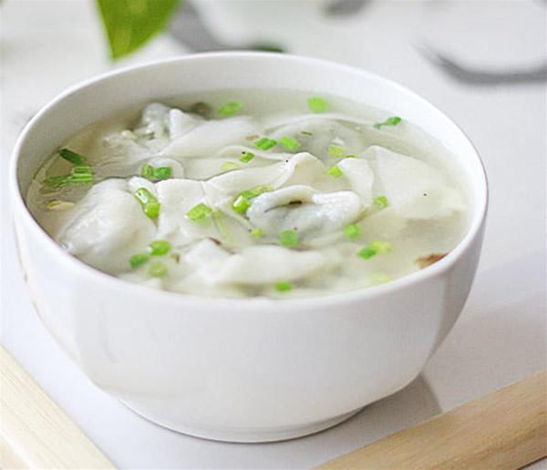 皺紗餛飩出自南門口的"雙燕"餛飩店。它采用富強(qiáng)粉為原料,精工搟成的皮,薄如紙,軟如緞,吃有韌勁。餡心選用新鮮豬腿瘦肉,配以適量肥肉,絞成肉泥,再加一定比例的清水、食鹽、味精等,使勁攪拌肉至泥,吃透水份。這樣制作的餡心酥而不爛,嫩而泡松。包好的餛飩,一經(jīng)煮熟,外皮起皺,緊裹餡心。因皮薄似輕紗,故有皺紗餛飩之稱。其湯選用高湯,配以排冬菜,昧道鮮美。