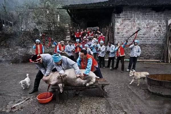 土家族人提前一天趕著過年,故稱“過趕年”。過“趕年”的晚上,寨中空?qǐng)鋈计痼艋穑良胰藝艋鹛鴶[手舞,唱調(diào)年歌。“六月年”因土家人歷史上一次重要遷移而來,土家人在這天宰牛祭神。“十月年”是土家人遷移后,為迎接新家園第一個(gè)豐收而進(jìn)行的,當(dāng)天土家人互相拜年,共同慶祝。