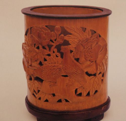 透雕花鳥筆筒