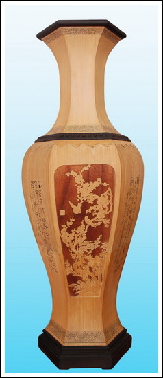 一件翻簧竹刻品的制作,既要有高超的造型技巧,又要有嚴(yán)謹(jǐn)?shù)漠嬅嬖O(shè)計(jì),還要有嫻熟的雕刻技巧,三者的和諧統(tǒng)一構(gòu)成邵陽翻簧竹刻的整體藝術(shù)特色。其中以雕刻技巧尤為重要,其技法有線刻、浮雕、沉雕、陰文雕、陽文雕、彩色雕、鏤空、電繪、壓燙、腐蝕、鑲嵌等多種,而以陰文素雕最具特色。藝人們借鑒中國(guó)畫的白描技法,以刀代筆,刻線作畫,運(yùn)用多種刀法,使畫面疏密相間,虛實(shí)相生,形成一種獨(dú)特風(fēng)格。產(chǎn)品以盒、瓶、屏風(fēng)、相架為主,兼及盤、碟、筒、架、大型掛屏和其他裝飾品,約有百余種。圖像多為蘭竹花卉、鳥獸蟲魚、仕女人物、山川勝跡等。由于成功地將傳統(tǒng)國(guó)畫和金石技法移植到竹刻上,作品工藝精巧,風(fēng)格典雅,清麗明快,很有東方藝術(shù)特色,因而深受國(guó)內(nèi)外人們的歡迎,產(chǎn)品遠(yuǎn)銷日本和歐美70多個(gè)國(guó)家和地區(qū)。1915年在巴拿馬萬國(guó)博覽會(huì)上,邵陽竹刻荷葉花瓶曾獲得銀牌獎(jiǎng)。