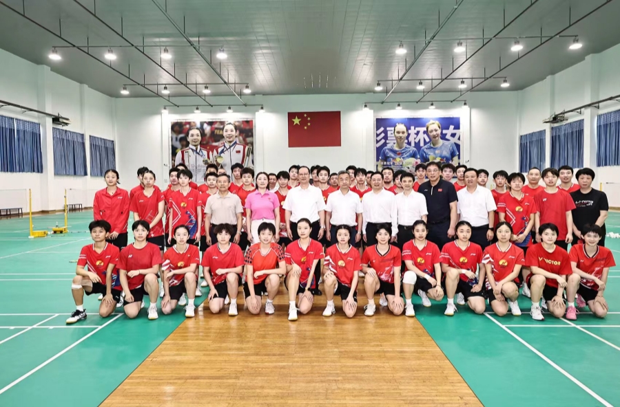 毛偉明在益陽市羽毛球運動學(xué)校看望正在集訓(xùn)的青少年運動員。