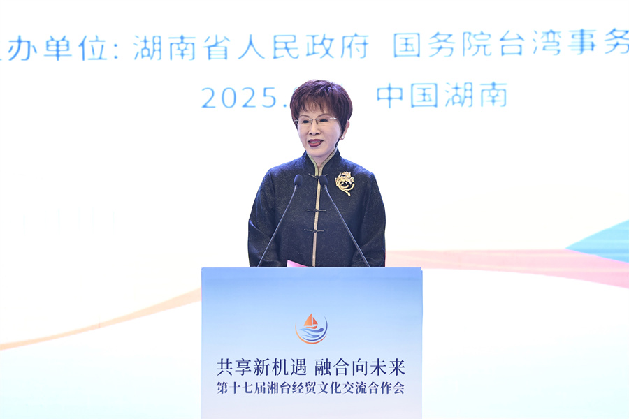洪秀柱表示,湖南跟臺(tái)灣雖相隔千里,但歷史與文化讓我們心手相連。湖南在抗戰(zhàn)史上寫下濃墨重彩的篇章,為中華民族抗戰(zhàn)勝利投注了信心力量。正是有了抗戰(zhàn)勝利,才迎來1945年臺(tái)灣光復(fù)。當(dāng)前湖南展現(xiàn)出傲人的發(fā)展成就,為湘臺(tái)合作開啟廣闊舞臺(tái)。兩地在現(xiàn)代農(nóng)業(yè)、文化創(chuàng)意、康養(yǎng)產(chǎn)業(yè)等領(lǐng)域有著廣闊合作機(jī)遇。長江之水滔滔不絕,正如兩岸交流的大潮,不會(huì)因?yàn)轱L(fēng)浪而止息。兩岸同胞同屬中華民族、血脈相連、文化相通,更應(yīng)把握時(shí)代所賦予的新契機(jī),攜手合作迎向未來。