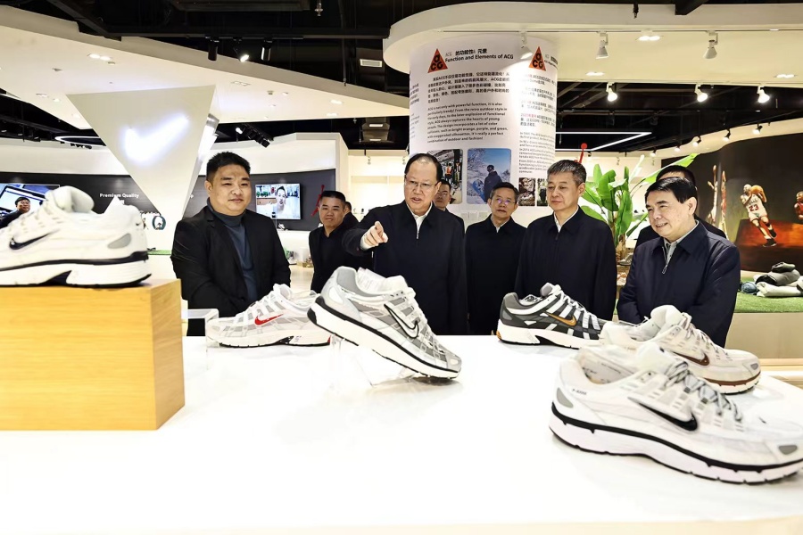 毛偉明在連泰鞋業(yè)調(diào)研。