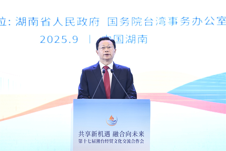潘賢掌表示,本屆湘臺會圍繞兩岸新型產(chǎn)業(yè)合作、青年創(chuàng)新創(chuàng)業(yè)等深入交流,對新形勢下推動兩岸經(jīng)濟(jì)融合共享共創(chuàng)新發(fā)展機(jī)遇具有重要意義。兩岸同胞血脈相連,是休戚與共的命運(yùn)共同體,加強(qiáng)交流合作符合兩岸同胞的共同期待。要攜起手來,共同抵御外部風(fēng)險挑戰(zhàn),壯大中華民族經(jīng)濟(jì),增進(jìn)同胞利益福祉。我們將繼續(xù)秉持兩岸一家親理念,積極為臺灣同胞創(chuàng)造更好發(fā)展機(jī)遇,分享更多發(fā)展成果。希望廣大臺灣同胞牢記民族歷史,弘揚(yáng)愛國精神,堅(jiān)持一個中國原則和“九二共識”,共同反對“臺獨(dú)”分裂和外部勢力干涉,堅(jiān)定守護(hù)中華民族共同家園,堅(jiān)定共創(chuàng)中華民族綿長福祉。