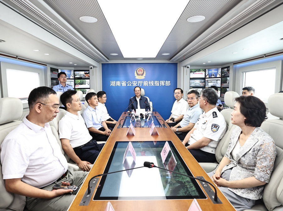 毛偉明在移動指揮車上了解有關(guān)情況。