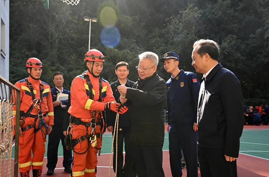 12月17日,沈曉明在莽山消防救援站調(diào)研。
