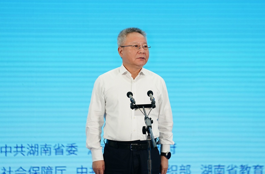 中南大學(xué)黨委書記易紅致辭。山河智能裝備股份有限公司創(chuàng)始人何清華、長沙素靈智造科技有限公司總經(jīng)理梁邦朝作為嘉賓代表發(fā)言。會(huì)上發(fā)布了“智匯瀟湘 才聚湖南”系列行動(dòng)推進(jìn)情況。
