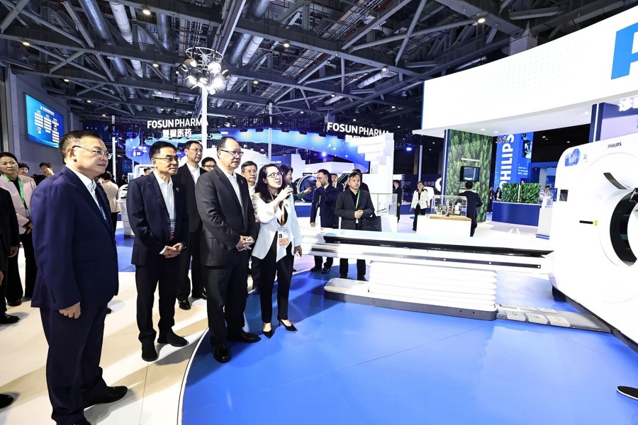 在醫(yī)療器械及醫(yī)藥保健展區(qū),毛偉明一行先后參觀了飛利浦、諾和諾德、諾華、拜耳等企業(yè)展臺(tái),了解新技術(shù)、新產(chǎn)品、新服務(wù),現(xiàn)場(chǎng)推介湖南投資機(jī)遇。他說,生物醫(yī)藥與醫(yī)療器械產(chǎn)業(yè)是湖南13條重點(diǎn)推進(jìn)產(chǎn)業(yè)鏈之一。誠(chéng)邀大家來湘共促技術(shù)變革、共拓產(chǎn)業(yè)空間,與湖南高質(zhì)量發(fā)展同頻共振、在未來賽道攜手奔跑。