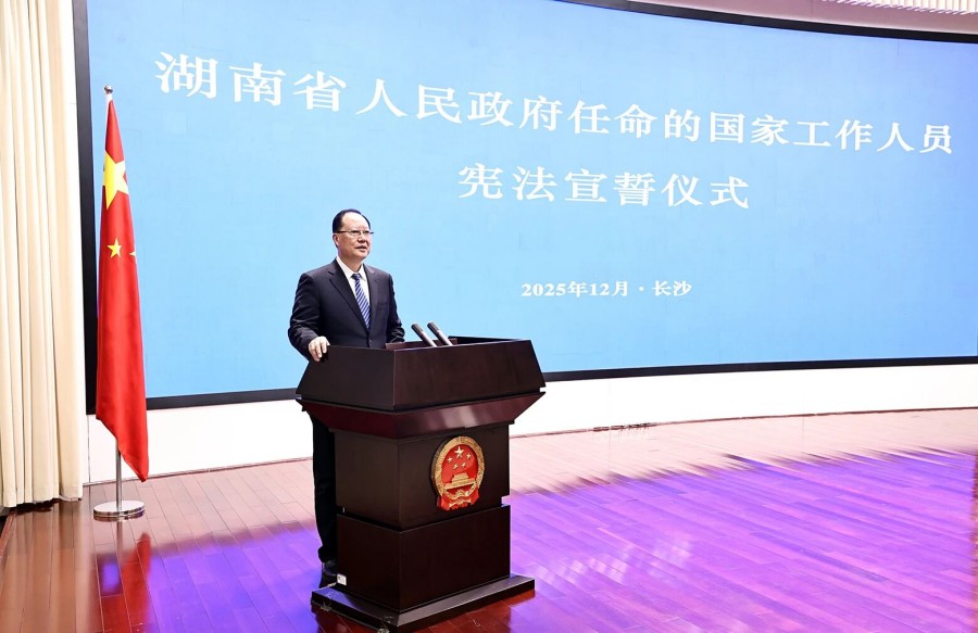 宣誓后,毛偉明指出,憲法宣誓既是一項(xiàng)法定儀式,更是一項(xiàng)莊嚴(yán)承諾。大家要珍惜職責(zé)、不負(fù)重托,更好依法履職、擔(dān)當(dāng)作為。要堅持絕對忠誠本色。始終旗幟鮮明講政治,始終在思想上、政治上、行動上同以習(xí)近平同志為核心的黨中央保持高度一致,確保黨中央決策部署在湖南落地生根、開花結(jié)果。要堅持依法行政原則。把依法行政貫穿于決策、執(zhí)行、監(jiān)督和服務(wù)全過程各方面,持續(xù)提高運(yùn)用法治思維和法治方式深化改革、推動發(fā)展、化解矛盾、維護(hù)穩(wěn)定、應(yīng)對風(fēng)險的能力,讓法治成為政府工作的鮮明底色。要堅持為民服務(wù)初心。用心用情辦好每一件民生實(shí)事,千方百計解決好群眾急難愁盼,實(shí)現(xiàn)好、維護(hù)好、發(fā)展好最廣大人民的根本利益,讓民生福祉更加可感、可及。要堅持清廉從政底線。始終把深入貫徹中央八項(xiàng)規(guī)定精神學(xué)習(xí)教育常態(tài)化、長效化,持之以恒改作風(fēng)、樹新風(fēng),時時自警、自省、自律,處處慎權(quán)、慎獨(dú)、慎微,做到一心為公、一身正氣、一生為民。