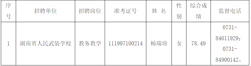根據(jù)《湖南省省直事業(yè)單位2025年第三次集中公開招聘工作人員公告》有關(guān)要求,經(jīng)報(bào)名、資格審查、筆試、面試、體檢、考察等程序,確定楊瑞珍等1名同志為湖南省人力資源和社會(huì)保障廳所屬事業(yè)單位2025年公開招聘第二批擬聘用人員,現(xiàn)予以公示。