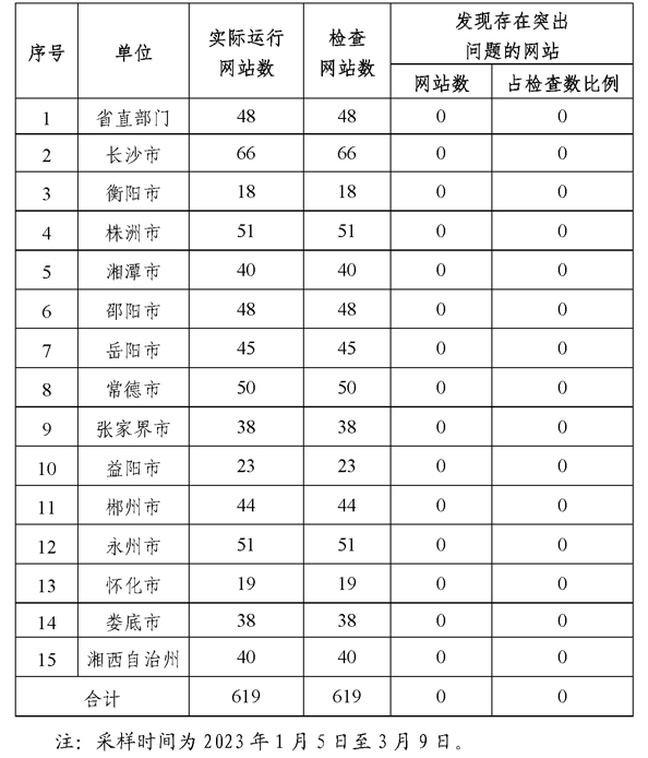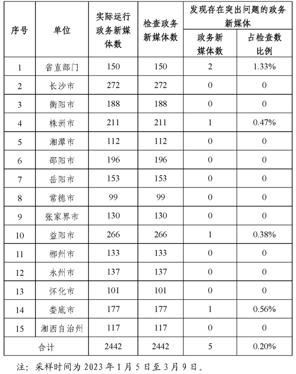 湖南省政務(wù)管理服務(wù)局關(guān)于2023年第一季度全省政府網(wǎng)站與政務(wù)新媒體檢查情況的通報(bào)