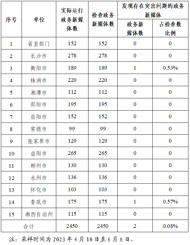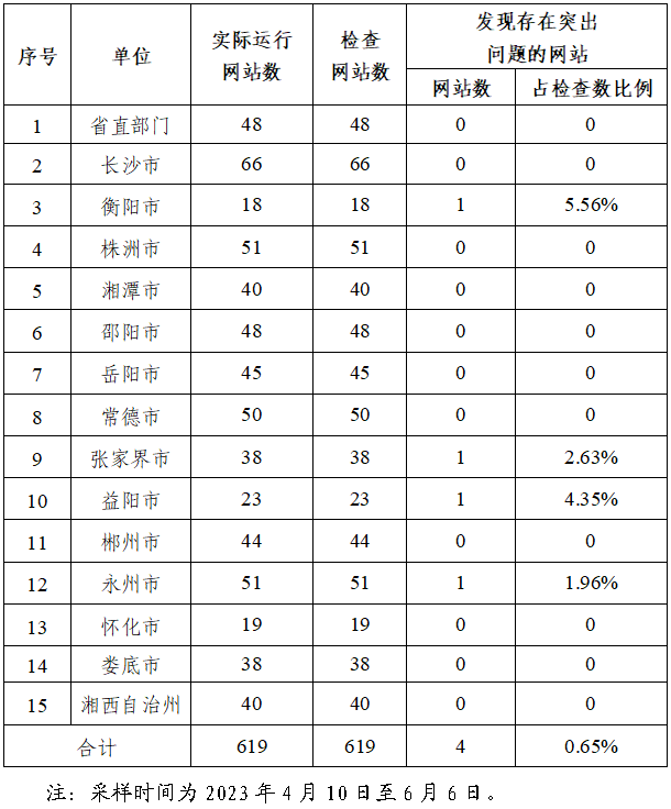 湖南省政務(wù)管理服務(wù)局關(guān)于2023年第二季度全省政府網(wǎng)站與政務(wù)新媒體檢查情況的通報