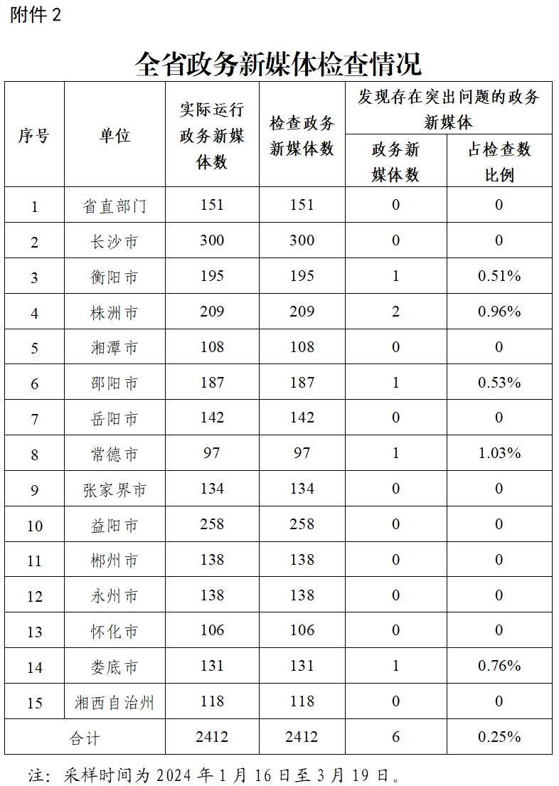 湖南省數(shù)據(jù)局關(guān)于2024年第一季度全省政府網(wǎng)站與政務(wù)新媒體檢查情況的通報(bào)