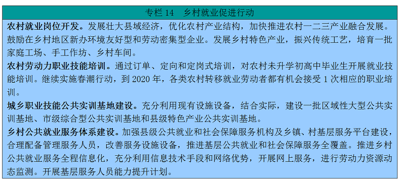 149.提升就業(yè)公共服務(wù)水平。落實(shí)就業(yè)政策法規(guī)咨詢(xún)、信息發(fā)布、職業(yè)指導(dǎo)、職業(yè)介紹等公共就業(yè)服務(wù)制度。大力開(kāi)展“311”就業(yè)服務(wù)行動(dòng),每年至少為有就業(yè)意愿且未就業(yè)的農(nóng)村勞動(dòng)力推薦3次崗位、提供1次職業(yè)指導(dǎo)、提供1次技能培訓(xùn)服務(wù)。加快公共就業(yè)服務(wù)信息化建設(shè),打造線上線下一體化服務(wù)體系。整合企業(yè)、職業(yè)院校和各類(lèi)培訓(xùn)機(jī)構(gòu)資源,合理布局建設(shè)一批公共實(shí)訓(xùn)基地。加強(qiáng)就業(yè)困難農(nóng)村勞動(dòng)力分類(lèi)幫扶,實(shí)施農(nóng)村殘疾人“陽(yáng)光增收計(jì)劃”。每年新增農(nóng)村勞動(dòng)力轉(zhuǎn)移就業(yè)60萬(wàn)人(含農(nóng)村大學(xué)生就業(yè))。