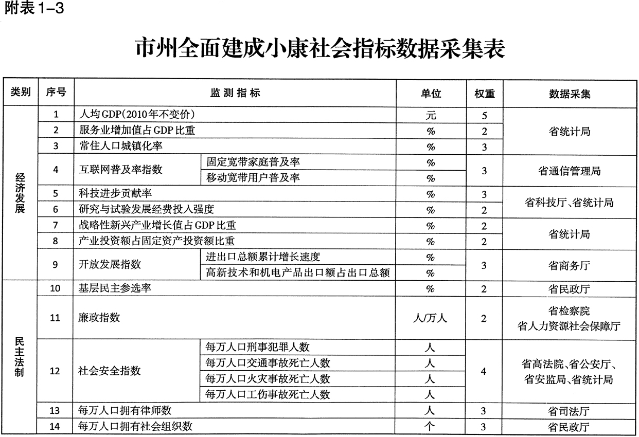全面建成小康社會考核納入績效評估體系,實(shí)行“三統(tǒng)一分”,即統(tǒng)一指標(biāo)體系、統(tǒng)一數(shù)據(jù)采集、統(tǒng)一考核評估,分開評定結(jié)果。