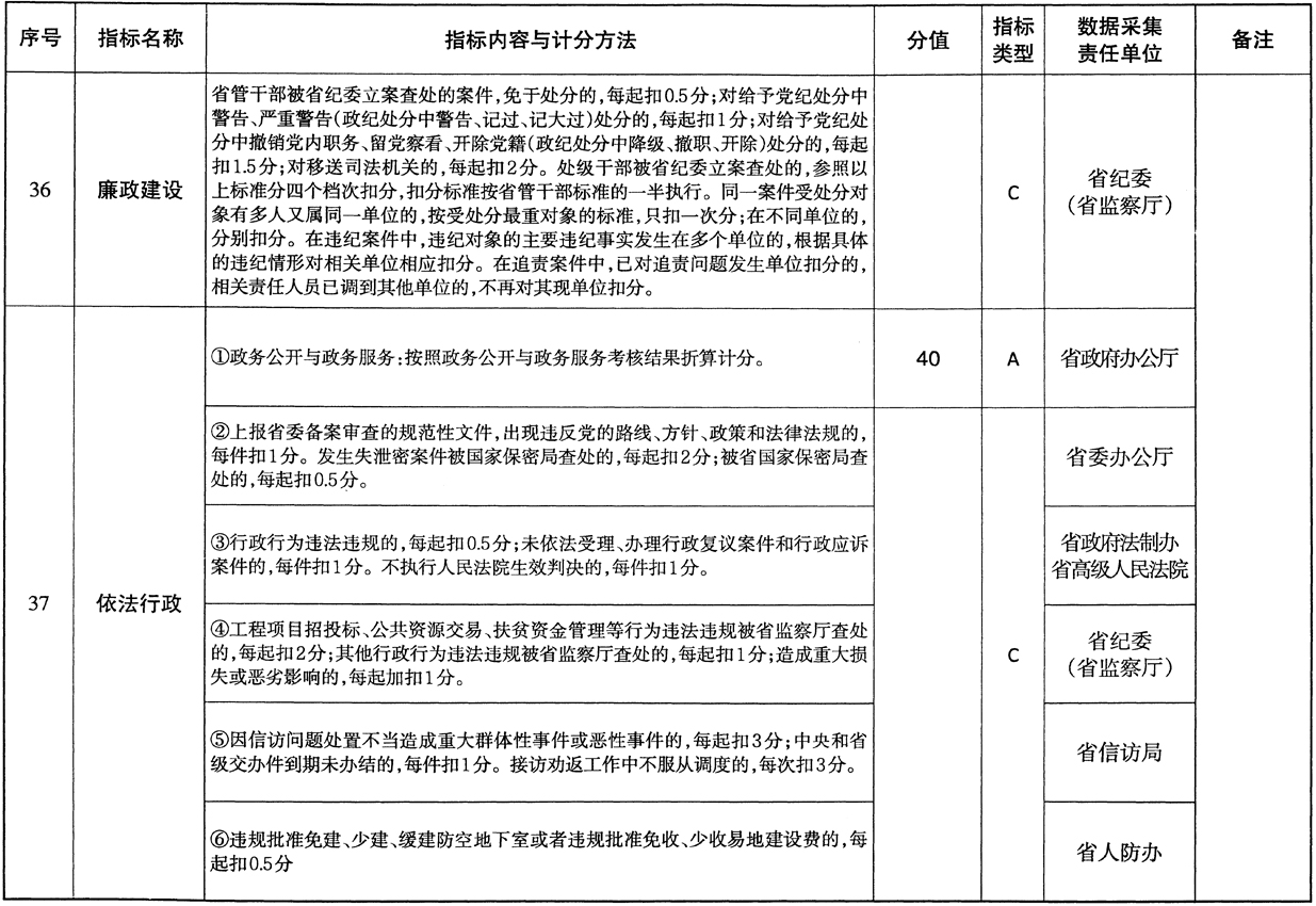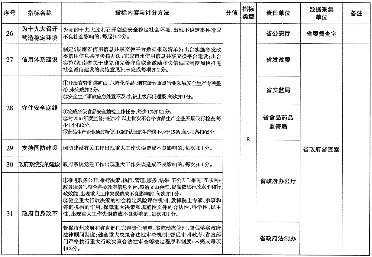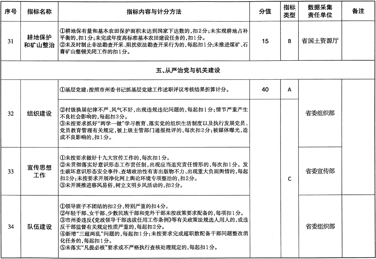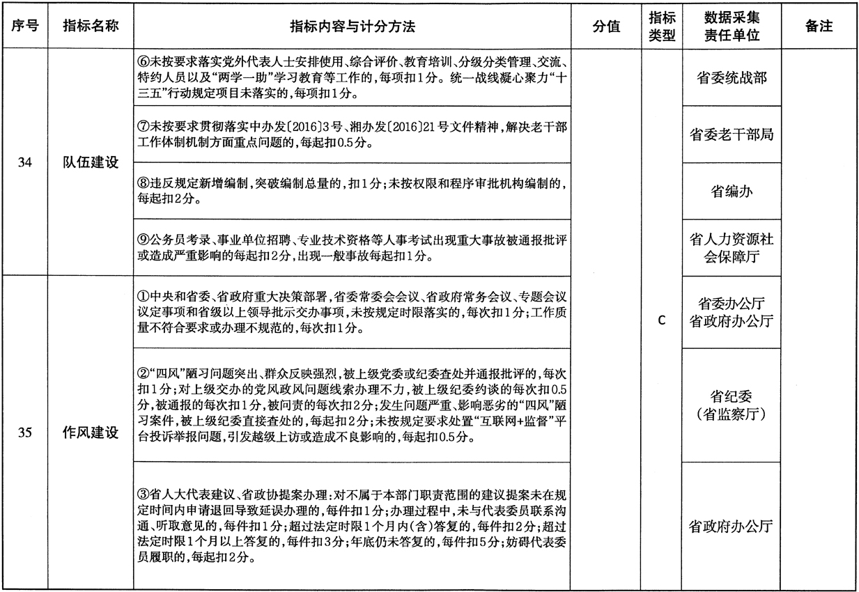 3.內(nèi)部評估。由省直單位評價市州黨委、政府和市州(縣市區(qū))黨委、政府評價省直單位組成(具體評估方式和評分細(xì)則另行制定)。