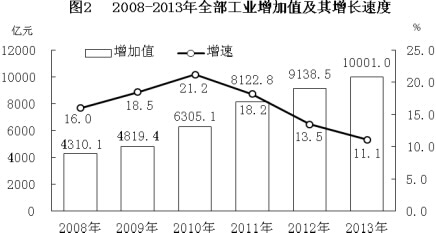 全省全部工業(yè)增加值10001.0億元,比上年增長11.1%。規(guī)模以上工業(yè)增加值增長11.6%。規(guī)模以上工業(yè)新產(chǎn)品產(chǎn)值增長23.2%,占工業(yè)總產(chǎn)值比重為13.1%,比上年提高1個百分點(diǎn)。規(guī)模以上高加工度工業(yè)和高技術(shù)產(chǎn)業(yè)增加值分別增長14.1%和27.3%;增加值占規(guī)模以上工業(yè)的比重分別為35.6%和9.0%,比上年提高1個和1.5個百分點(diǎn)。六大高耗能行業(yè)增加值增長12.8%,占規(guī)模以上工業(yè)的比重為31.6%。非公有制規(guī)模以上工業(yè)增加值增長14.7%。長株潭城市群規(guī)模以上工業(yè)增加值增長13.2%,環(huán)長株潭城市群增長12.5%,湘南地區(qū)增長12.0%,大湘西地區(qū)增長9.4%,洞庭湖生態(tài)經(jīng)濟(jì)區(qū)增長12.1%。
