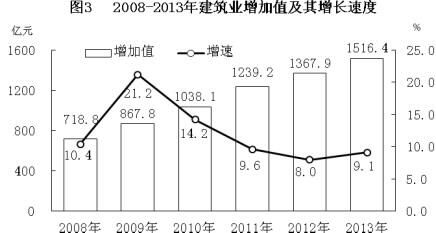 全省建筑業(yè)增加值1516.4億元,比上年增長9.1%。具有資質(zhì)等級的總承包和專業(yè)承包建筑企業(yè)實(shí)現(xiàn)利潤184.4億元,增長23.3%。房屋建筑施工面積43141.9萬平方米,增長18.5%。房屋建筑竣工面積15528.5萬平方米,增長15.9%。
