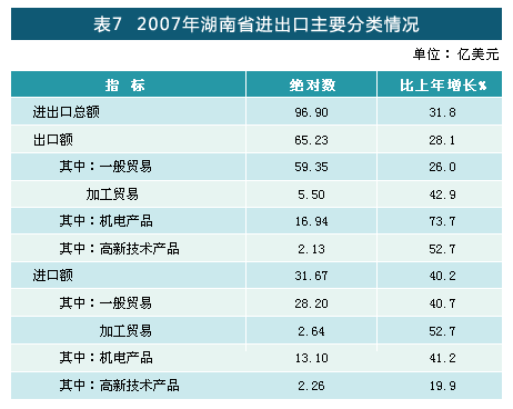 進(jìn)出口總額繼續(xù)增長。全省進(jìn)出口總額96.90億美元,比上年增長31.8%。其中,出口65.23億美元,增長28.1%;進(jìn)口31.67億美元,增長40.2%。一般貿(mào)易進(jìn)出口87.55億美元,增長30.4%;加工貿(mào)易進(jìn)出口8.14億美元,增長46.0%。私營企業(yè)進(jìn)出口35.90億美元,比上年增長81.1%,加快28.3個百分點(diǎn)。機(jī)電產(chǎn)品出口16.94億美元,比上年增長73.7%,加快43.3個百分點(diǎn);高新技術(shù)產(chǎn)品出口2.13億美元,增長52.7%。農(nóng)產(chǎn)品出口3.5億美元,增長12.4%。其中,活豬出口0.53億美元,增長14.7%;茶葉出口0.40億美元,增長19.2%。