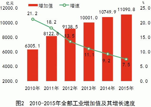 表1 2015年規(guī)模以上工業(yè)主要產(chǎn)品產(chǎn)量及其增長速度