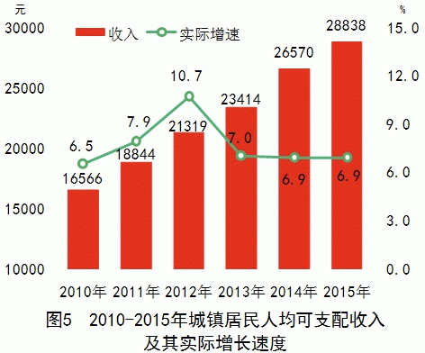 全省全體居民人均可支配收入19317元,比上年增長9.6%,扣除價格因素實際增長8.1%;人均可支配收入中位數(shù)16654元。城鎮(zhèn)居民人均可支配收入28838元,比上年增長8.5%,扣除價格因素實際增長6.9%;城鎮(zhèn)居民人均可支配收入中位數(shù)27216元。農(nóng)村居民人均可支配收入10993元,增長9.3%,扣除價格因素實際增長8.1%;農(nóng)村居民人均可支配收入中位數(shù)10032元。分區(qū)域看,長株潭地區(qū)居民人均可支配收入30655元,增長8.4%;湘南地區(qū)18070元,增長9.2%;大湘西地區(qū)12877元,增長10.2%;洞庭湖地區(qū)17603元,增長9.6%。城鄉(xiāng)居民收入比由上年的2.64:1縮小為2.62:1。