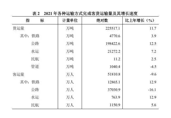 全年客貨運(yùn)輸換算周轉(zhuǎn)量3608.3億噸公里,比上年增長10.6%。貨物周轉(zhuǎn)量2915.9億噸公里,增長11.3%。其中,鐵路周轉(zhuǎn)量986.9億噸公里,增長15.2%;公路周轉(zhuǎn)量1461.2億噸公里,增長8.2%。旅客周轉(zhuǎn)量1013.3億人公里,增長3.4%。其中,鐵路周轉(zhuǎn)量660.6億人公里,增長8.7%;公路周轉(zhuǎn)量195.4億人公里,下降13.1%;民航周轉(zhuǎn)量155.7億人公里,增長6.9%。
