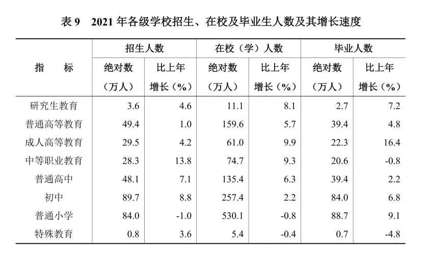 年末有普通高校114所。研究生教育畢業(yè)生2.7萬人,普通高等教育畢業(yè)生39.4萬人,中等職業(yè)教育畢業(yè)生20.6萬人,普通高中畢業(yè)生39.4萬人,初中畢業(yè)生84.0萬人,普通小學(xué)畢業(yè)生88.7萬人。在園幼兒229.4萬人,比上年下降0.9%。小學(xué)適齡兒童入學(xué)率