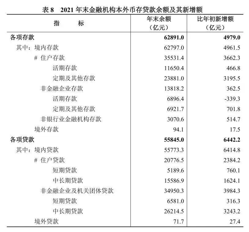 年末金融機(jī)構(gòu)本外幣各項(xiàng)存款余額62891.0億元,比上年末增長8.6%。其中,住戶存款余額35531.4億元,增長11.5%;非金融企業(yè)存款余額13818.2億元,增長2.7%。本外幣各項(xiàng)貸款余額55845.0億元,增長13.0%。其中,住戶貸款余額20776.5億元,增長13.0%;非金融企業(yè)及機(jī)關(guān)團(tuán)體貸款余額34950.3億元,增長12.9%。