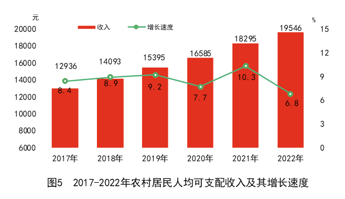 全年全省居民人均可支配收入34036元,比上年增長6.4%;全省居民人均可支配收入中位數(shù)27400元,增長6.1%。按常住地分,城鎮(zhèn)居民人均可支配收入47301元,增長5.4%;城鎮(zhèn)居民人均可支配收入中位數(shù)42432元,增長5.6%。農(nóng)村居民人均可支配收入19546元,增長6.8%;農(nóng)村居民人均可支配收入中位數(shù)17583元,增長6.6%。城鄉(xiāng)居民收入比由上年的2.45縮小為2.42。分區(qū)域看,長株潭地區(qū)全體居民人均可支配收入51802元,增長5.9%;湘南地區(qū)全體居民人均可支配收入31500元,增長6.6%;大湘西地區(qū)全體居民人均可支配收入23611元,增長6.4%;洞庭湖地區(qū)全體居民人均可支配收入31070元,增長6.5%。脫貧縣[16]農(nóng)村居民人均可支配收入14714元,增長8.7%。