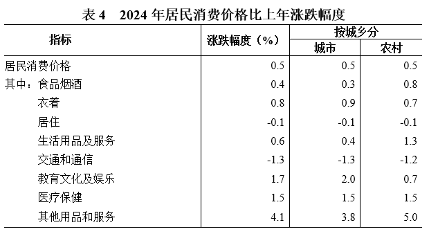 全省居民消費(fèi)價(jià)格比上年上漲0.5%。其中,城市上漲0.5%,農(nóng)村上漲0.5%。工業(yè)生產(chǎn)者出廠價(jià)格下降0.7%,工業(yè)生產(chǎn)者購進(jìn)價(jià)格下降2.4%。農(nóng)產(chǎn)品生產(chǎn)者價(jià)格上漲3.3%。