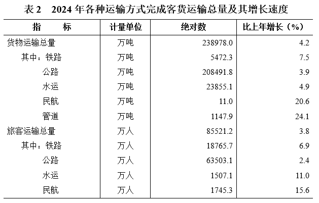 [8]貨物運(yùn)輸總量及周轉(zhuǎn)量包括鐵路、公路、水路、民航和管道五種運(yùn)輸方式完成量,2024年增速按可比口徑計(jì)算。