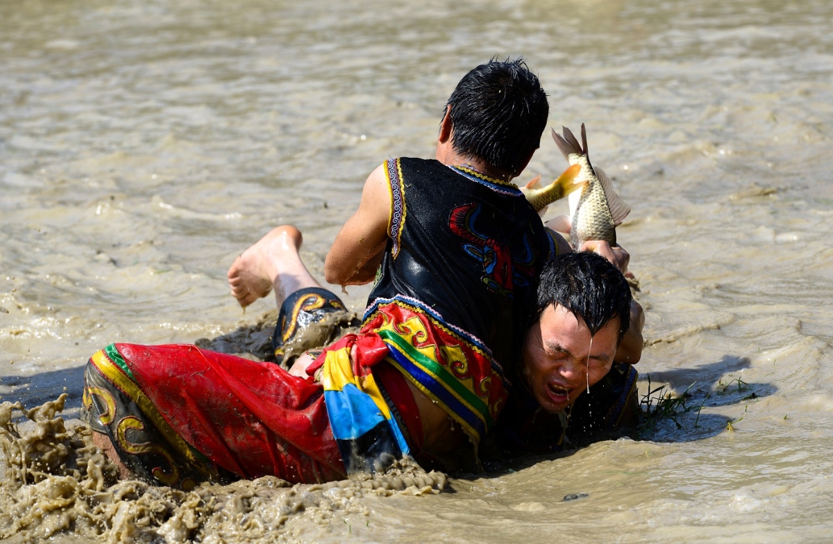 “搶魚塘”是湖南省溆浦縣溆水流域一帶傳統(tǒng)民俗活動。每年不定期的舉行這種活動,舉辦方在水田來放很多魚,鑼鼓聲一響,大家都可以去“搶”,誰搶到誰。
