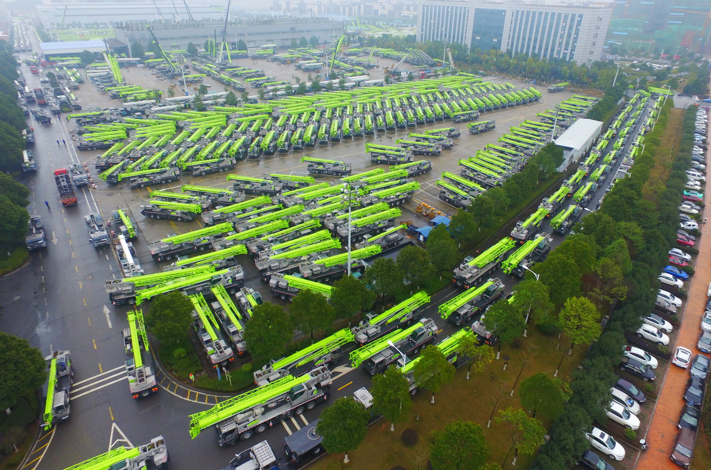 中聯(lián)重科泉塘工業(yè)園,各型號(hào)工程起重機(jī)有序駛出園區(qū),發(fā)往河南、深圳、江蘇等地。