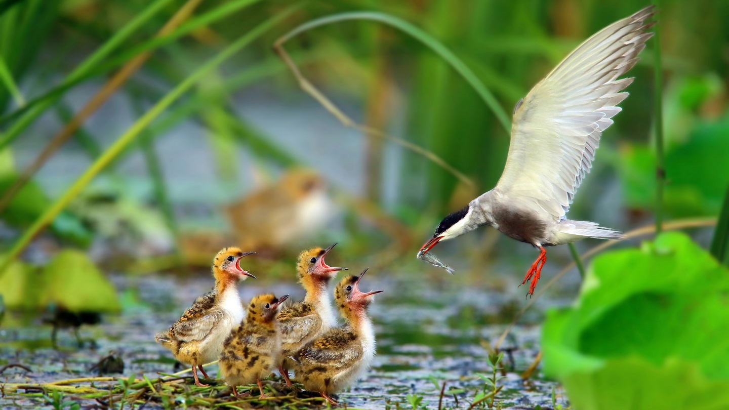 湘陰鶴龍湖,須浮鷗哺育幼鳥。