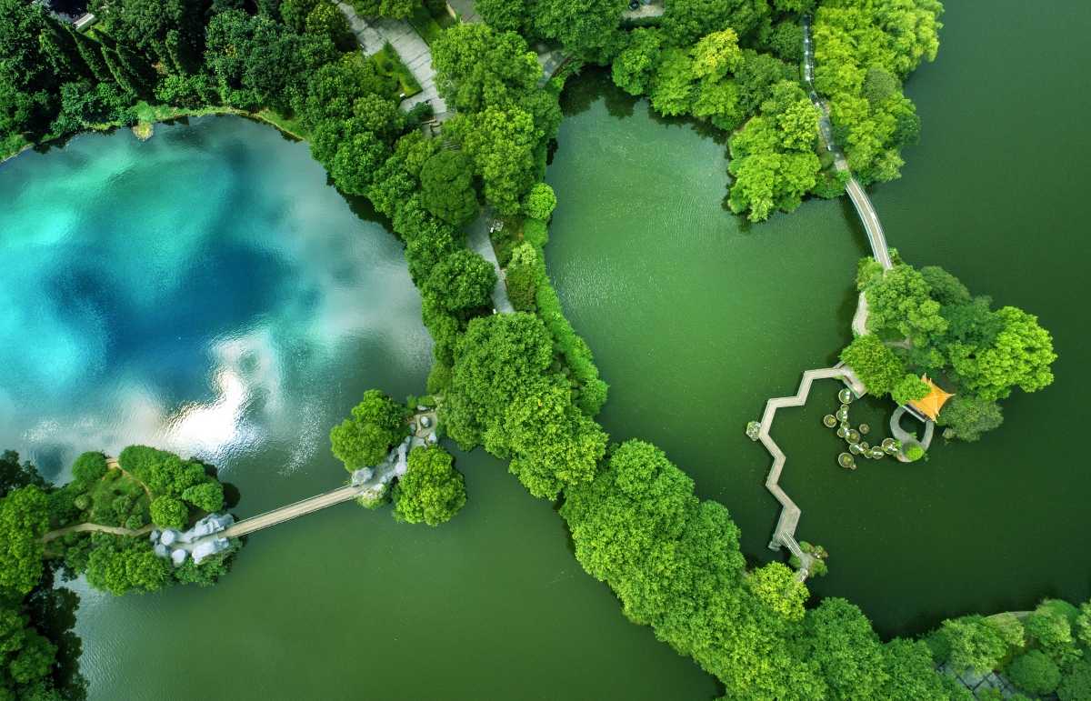 湘潭市雨湖公園,云自無心水自閑,云和水本無心相逢,但云影入水,水升化云,誰又能說二者之間沒有因果淵源?
