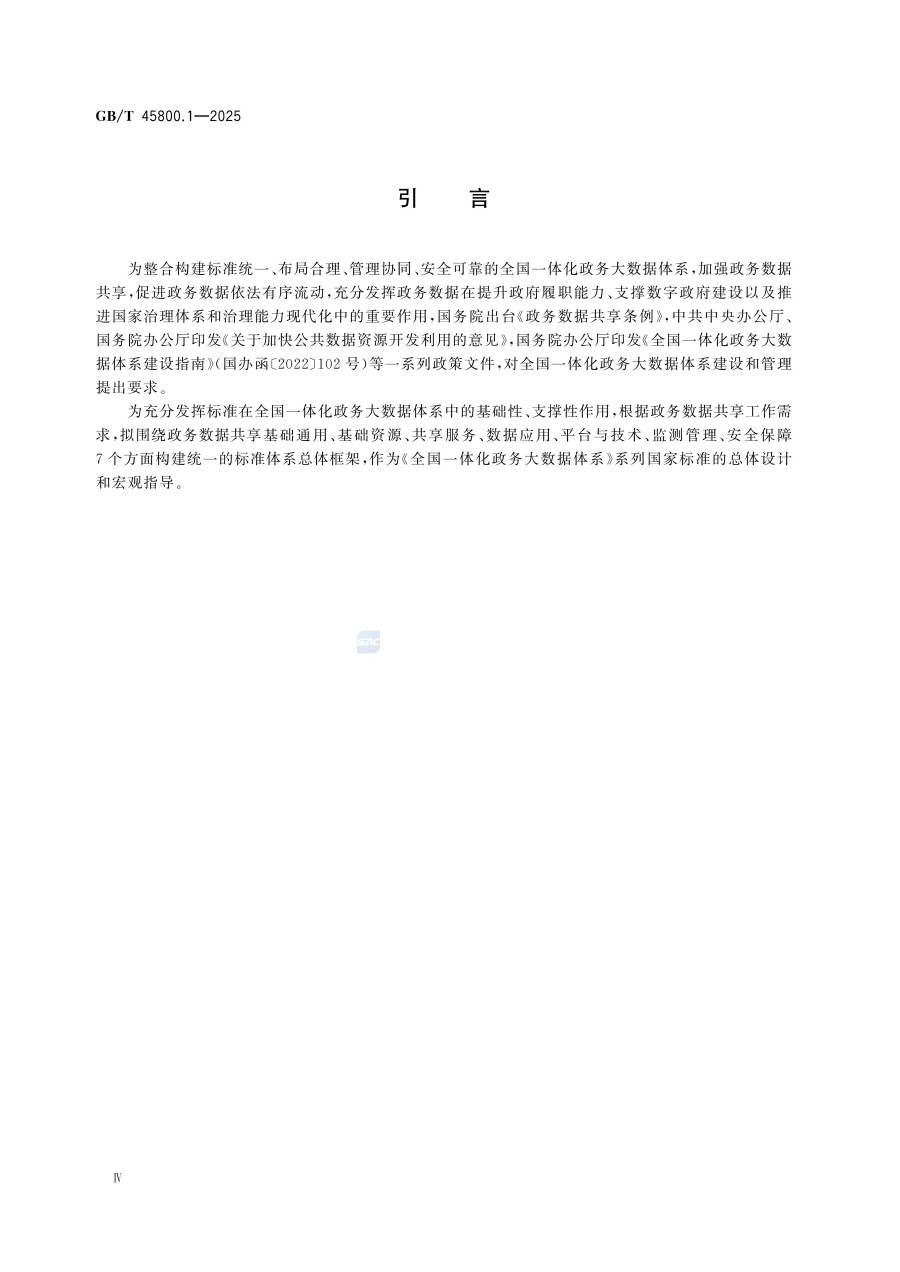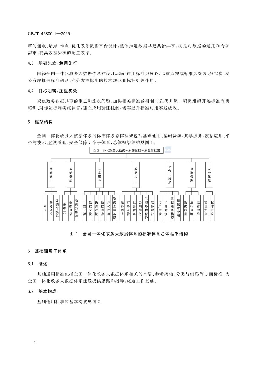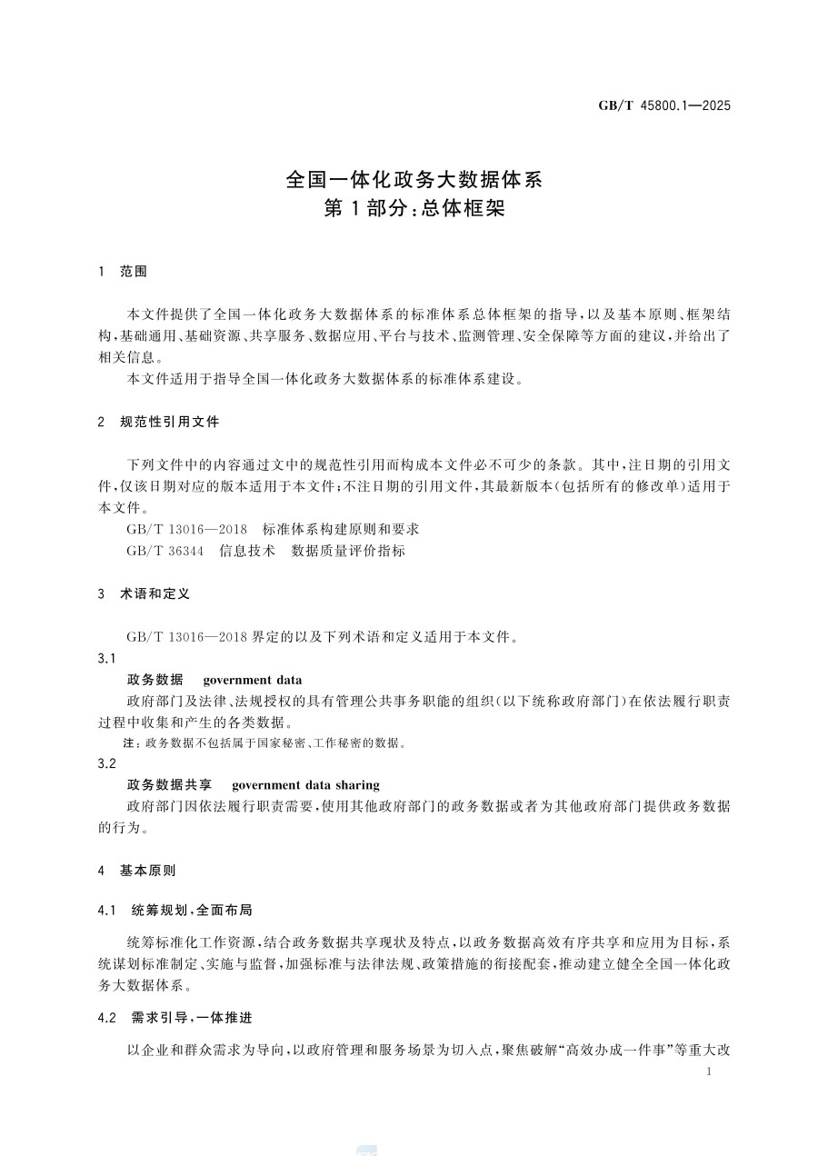 《全國(guó)一體化政務(wù)大數(shù)據(jù)體系 第1部分:總體框架》(GB/T 45800.1-2025)